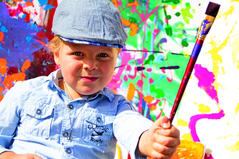 Der erst 5 Jahre junge Noah Feininger aus Mainstockheim zeigt Bilder, die er mit Pinsel, Schwämmen und Hände malt oder auch spritzt. Mehr als 50 Leinwände sind andere Materialien. Die Ausstellung bleibt bis 09.05. in der Galerie.