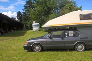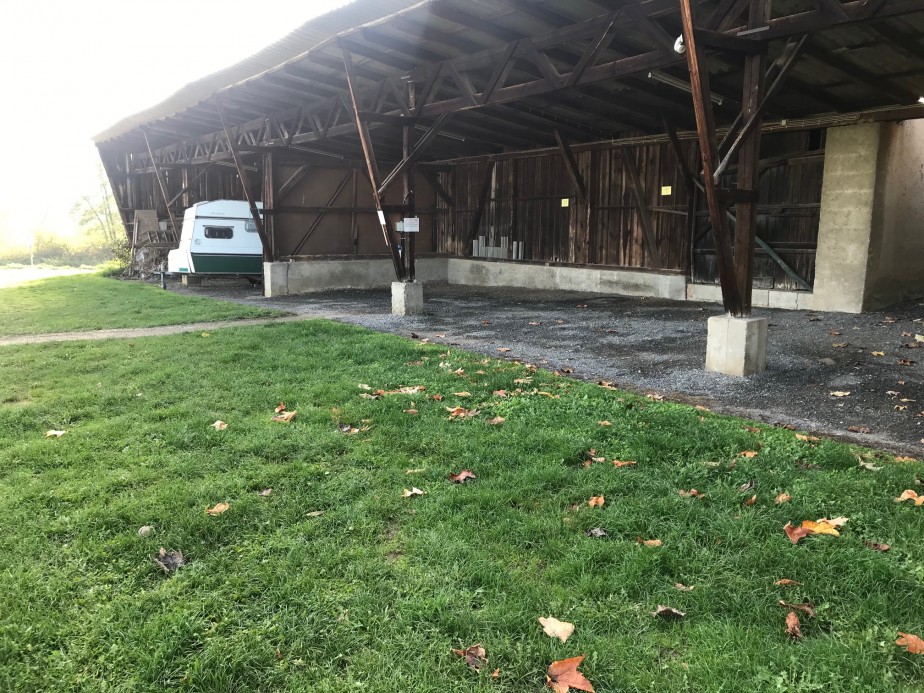Wettergeschützt unter dem Vordach. Als Freisitz nutzen Sie die Fläche neben Ihrem Fahrzeug, sowie den Rasen vor bzw. hinter Ihrem Camper.