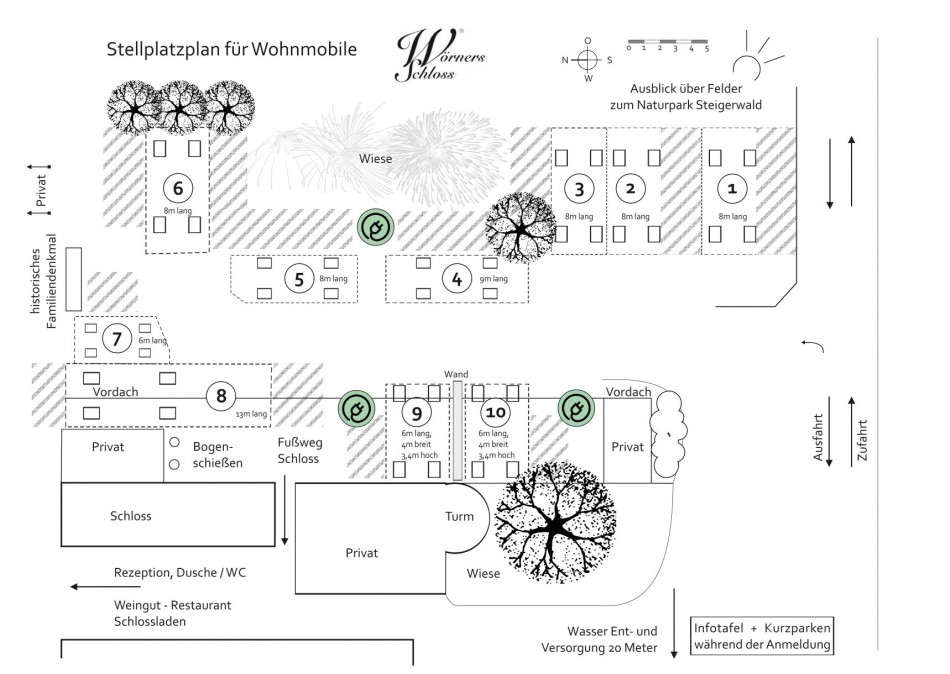 Stellplatzplan für Wohnmobile und Wohnwagen am Schloss > drucken