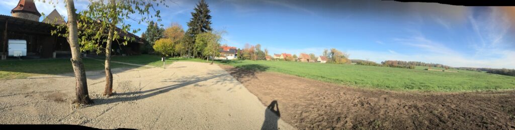 Parken Sie möglichst weit links (nördlich) in Richtung Stromsäule dann ergibt sich ein schöner Freisitz mit Blick Richtung Süden / Osten.